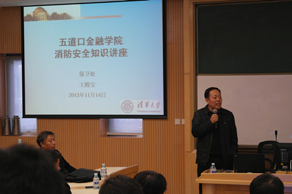 王殿宝以不久前发生在北京石景山喜隆多商场的火灾为例展开了讲座,通过一系列触目惊心的火灾现场照片以及对典型校园火灾案例的剖析,深入浅出地向同学们介绍了火灾的相关常识以及逃生技能,使同学们认识到在宿舍使用热得快等违禁电器的严重后果。主讲人现场演示了灭火器的使用方法,在与同学们积极互动的氛围中,指出使用灭火器时应当注意的细节,并强调在火灾现场切勿惊慌,不要跟随大流采取错误的逃生方法,并且在条件允许的情况下,争取赶到火灾发生地点的主要路口迎接消防车,为灭火争取宝贵的时间。