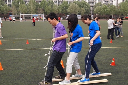 学生在踩气球、足球绕杆、转圈跑鞋子、自行车竞慢、套圈、走木鞋等项目中齐心协力,配合默契,取得了优异的战绩。