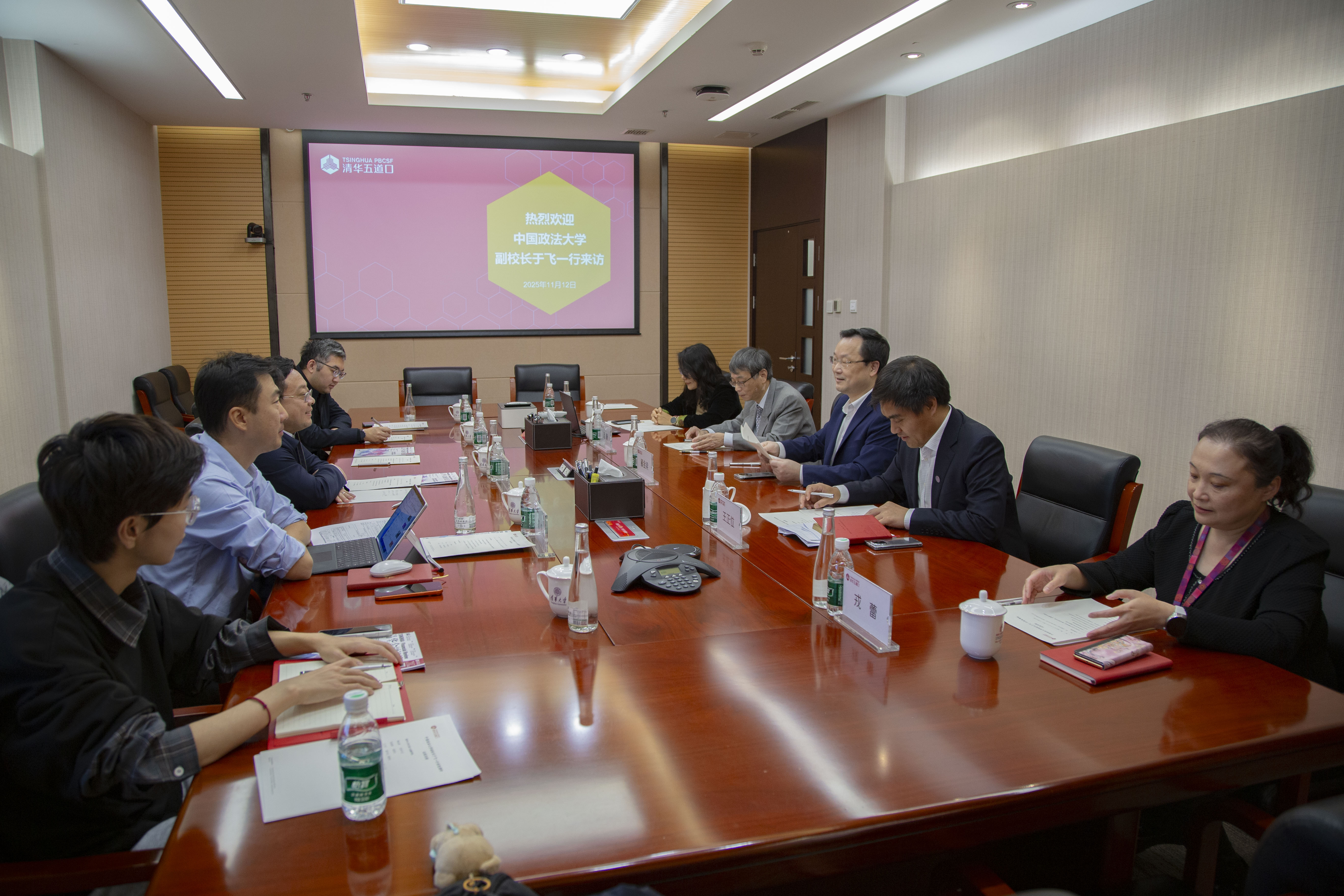 作为中国法学教育的最高学府,中国政法大学被誉为“中国人文社会科学领域的学术重镇”。于飞介绍了中国政法大学的办学理念、学科特色及此次调研的目的,希望通过交流借鉴五道口金融学院在相关领域的先进经验,深化双方的合作与联动。首都研究院是中国政法大学服务国家战略、支持首都高质量发展的重要载体,愿和五道口金融学院加强交流合作,为首都建设贡献智慧和力量。