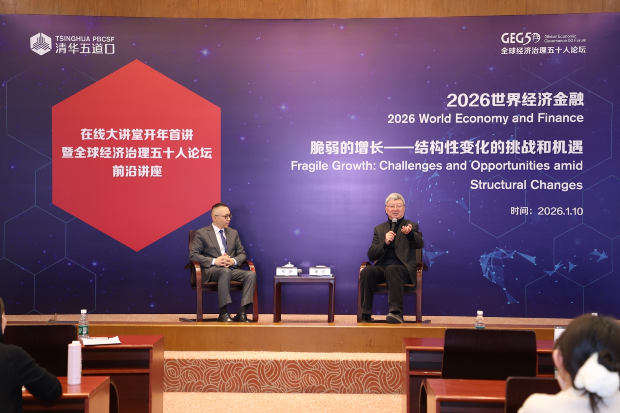 师生、校友及业界人士现场聆听,同时通过线上平台吸引了广泛关注。朱民以其深厚的学术功底和丰富的国际金融实践经验,系统梳理了当前全球经济金融面临的六个维度结构性变化,勾勒出一幅机遇与风险交织的2026年世界经济图景,为各界人士洞察趋势、应对变局提供了重要的思考框架。