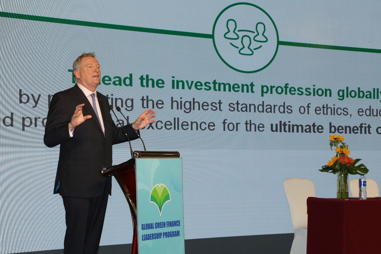 保罗·史密斯( Paul Smith)在主旨演讲中指出,CFA Institute多年来在推动金融领域能力建设积累了大量经验,近年来特别关注并支持绿色金融的发展,应该让CFA持证人认识到“ESG”(环境、社会与治理)和绿色金融的重要性,并已将部分内容纳入相关科目考试,以此推动相关能力与水平的提高。