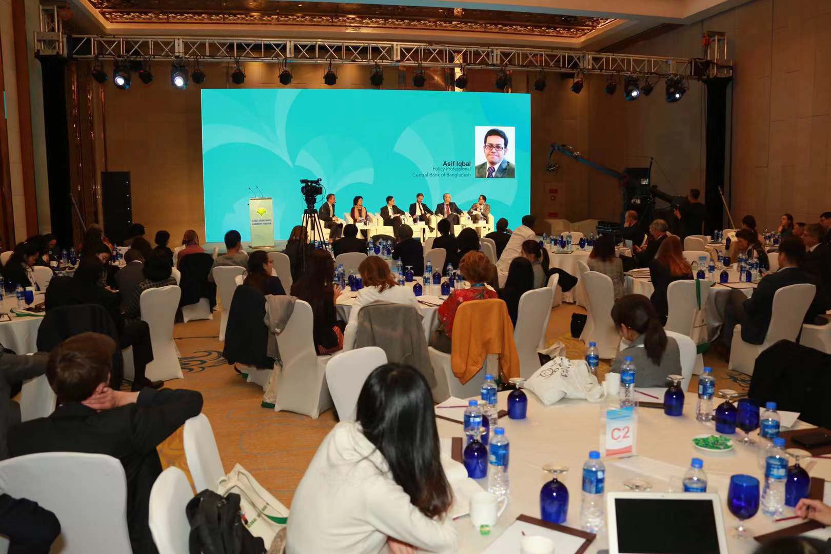 会议讨论了可持续发展的政策框架、绿色资产定义与分类标准、环境信息披露和发展绿色金融相关产品等议题。会议吸引了来自38个国家和地区的近百位代表参加,包括欧洲、亚洲、非洲、美洲,尤其是来自“一带一路”相关国家和地区的央行、财政部、金融监管当局、环保部门等政府官员,以及商业银行、研究机构、绿色企业等从业人员。