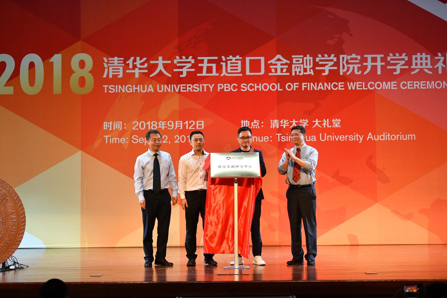 2018年开学典礼上,体育金融研究中心揭牌仪式及捐赠者授牌仪式举行。仪式由学院党委书记顾良飞主持,学院理事长兼院长吴晓灵、常务副院长廖理等其他领导出席,仪式现场由金融学院2018级新生共700余名同学共同见证。