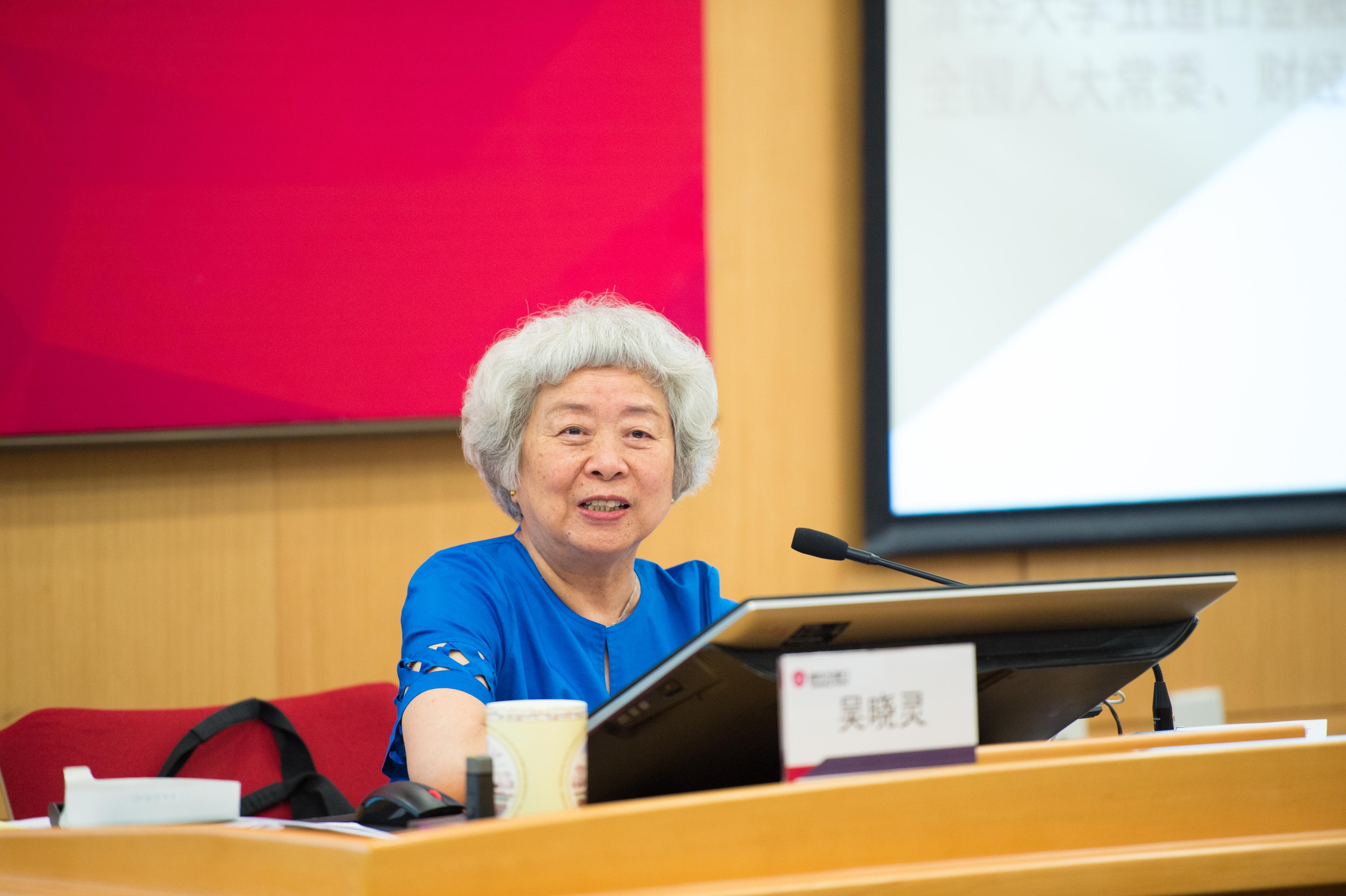 图为:吴晓灵院长授课中