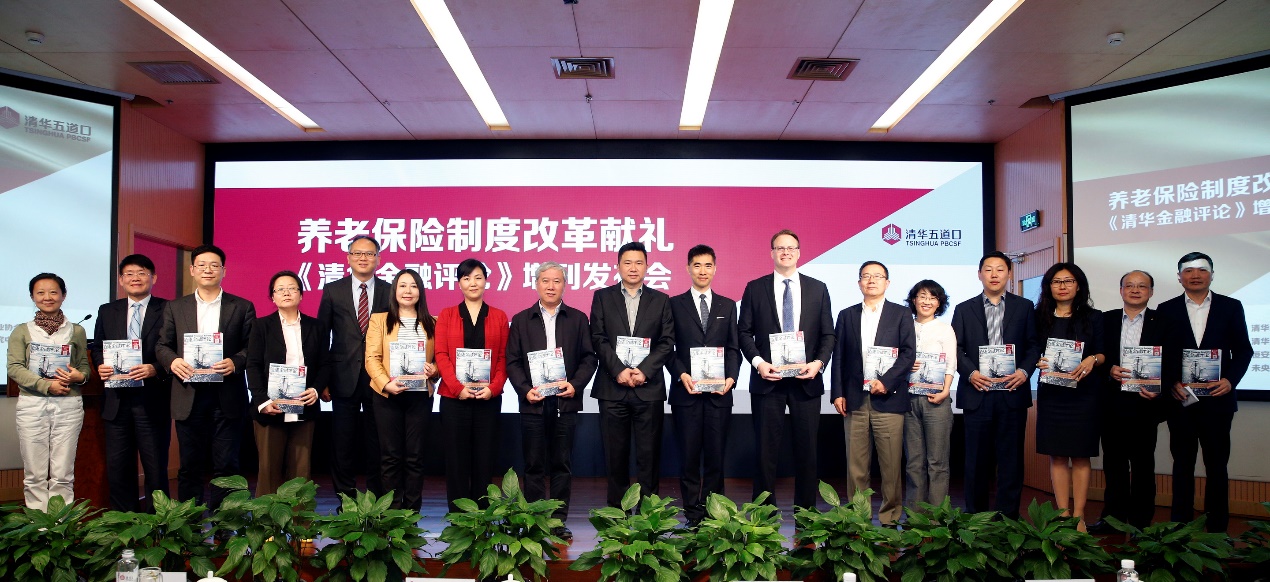 (图为“养老保险制度改革献礼——《清华金融评论》增刊发布会”与会嘉宾合影)