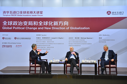 院长、原国际货币基金组织(IMF)副总裁朱民对话两位诺贝尔经济学奖获得者、著名经济学家——约瑟夫?斯蒂格利茨(Joseph E. Stiglitz)和迈克尔?斯宾塞(Michael Spence)。他们分别从全球化带来的挑战、要素流动和科技发展的角度解释了逆全球化现象产生的原因,展望了全球化未来发展趋势,并提出应对建议。