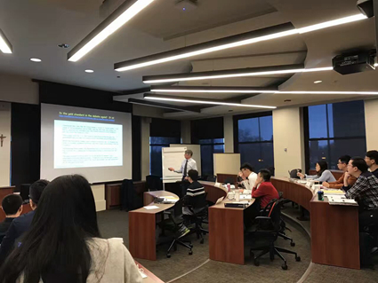 1月9日,冬令营的首门课程“美国金融体系及经济”(Financial System & Economy)在圣母大学芝加哥校区正式开始,Ronald Burgman(罗纳德·博格曼)教授系统梳理了美国金融体系的发展历程,并深入分析美国金融体系的现状及挑战。Burgman(博格曼)是圣母大学兼职教授,现任纽约战略关系咨询公司Asset Economics Inc. 的首席执行官,他曾为众多大型企业及公司提供咨询服务,并多次在联合国及经合组织(OECD)等重要论坛上演讲。