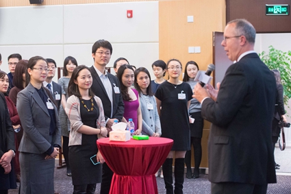 在随后的交流会上,田轩介绍了清华-康奈尔双学位金融MBA项目概况,约翰斯顿简短致辞并介绍了代表团的各位成员,随后三名学生代表向来宾致欢迎辞并拉开了交流会的序幕。
