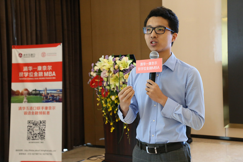 随后,首期班同学武威分享了自己在五道口一年的学习经历,“学术大牛的授课,同窗友情的真挚,赴美实践的收获,两个证书的含金量,平台带来的机会等都是该项目吸引人之处。”