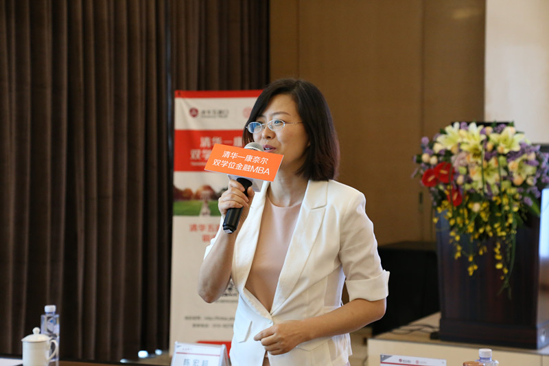图为许玲介绍清华-康奈尔双学位金融MBA项目