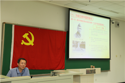 图为顾良飞老师讲党课