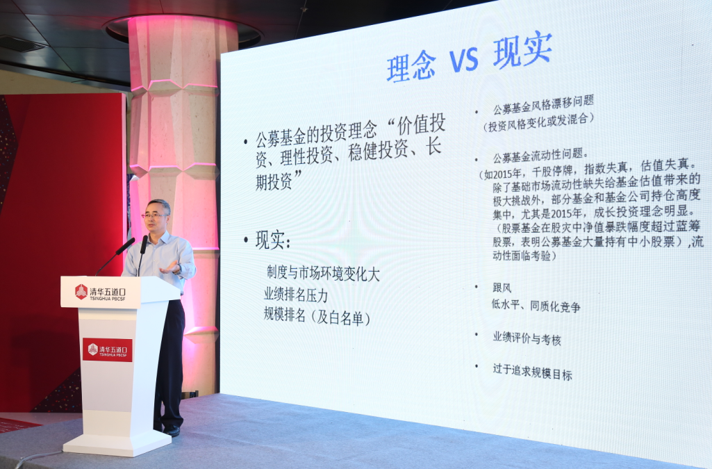 崔伟的演讲题目是“资产管理行业要回归常识”。崔伟回顾了中国公募基金的发展历程,阐述了公募基金的五大常识,以及未来公募基金发展的创新要点是要引入私募的机制和管理公司股权私有化的探索。他最后还总结了市场和政府的关系。
