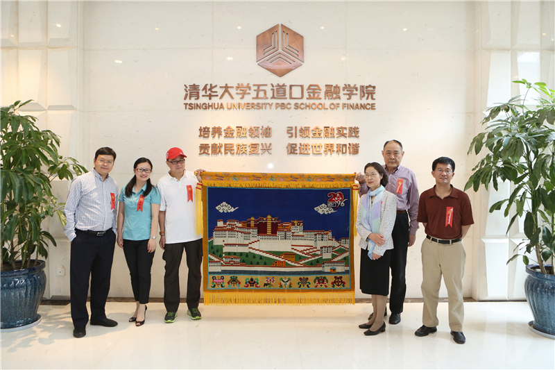 活动中,蒋宁校友代表1996级所有校友向学院和五道口校友会赠送了挂毯作品,康以同、李燕明、学院校友办主任张伟代表学院和校友会接受捐赠。