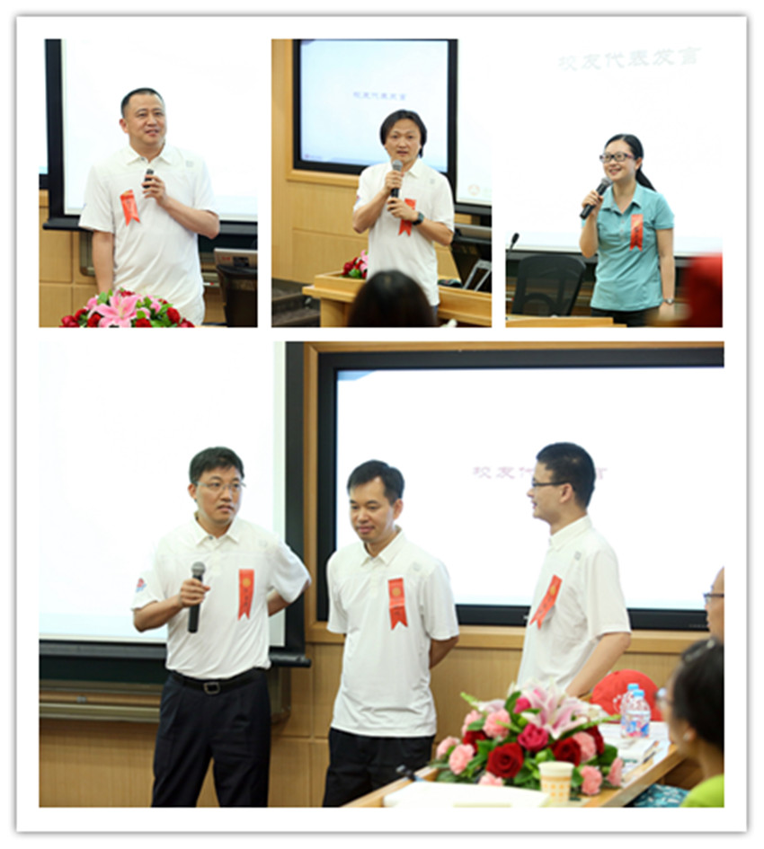蒋国云、龚彦焱、殷红海、蒋宁等校友纷纷发言,他们回顾自己的职业发展经历,回忆起在五道口求学时的有趣往事,向老师的教育之恩和同学的支持帮助之情表示深深的感谢,并为同学们在各个领域取得的成就深感骄傲。