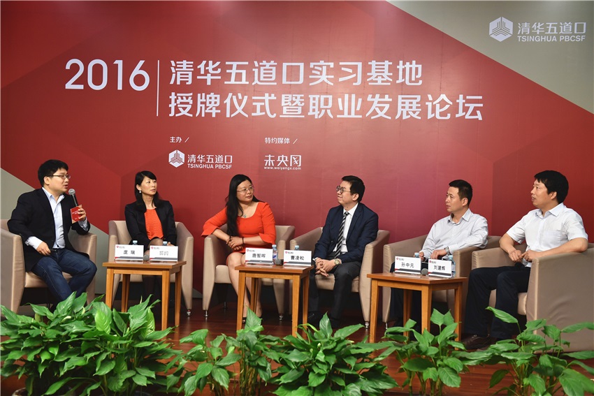 实习基地授牌仪式暨职业发展论坛于5月26日在学院成功举行,海尔集团、华泰证券、IDG资本、京东金融、申万宏源研究、泰康资产、天使汇、中股集团等八家企业接受了学院研究生实习基地的授牌,至此,学院研究生实习基地增加至43家。随后举行了以“如何基于行业发展的未来趋势看今天的职业选择和路径设计”为主题的职业发展论坛。学院党委书记顾良飞,党委副书记、副院长赵岑等出席活动。