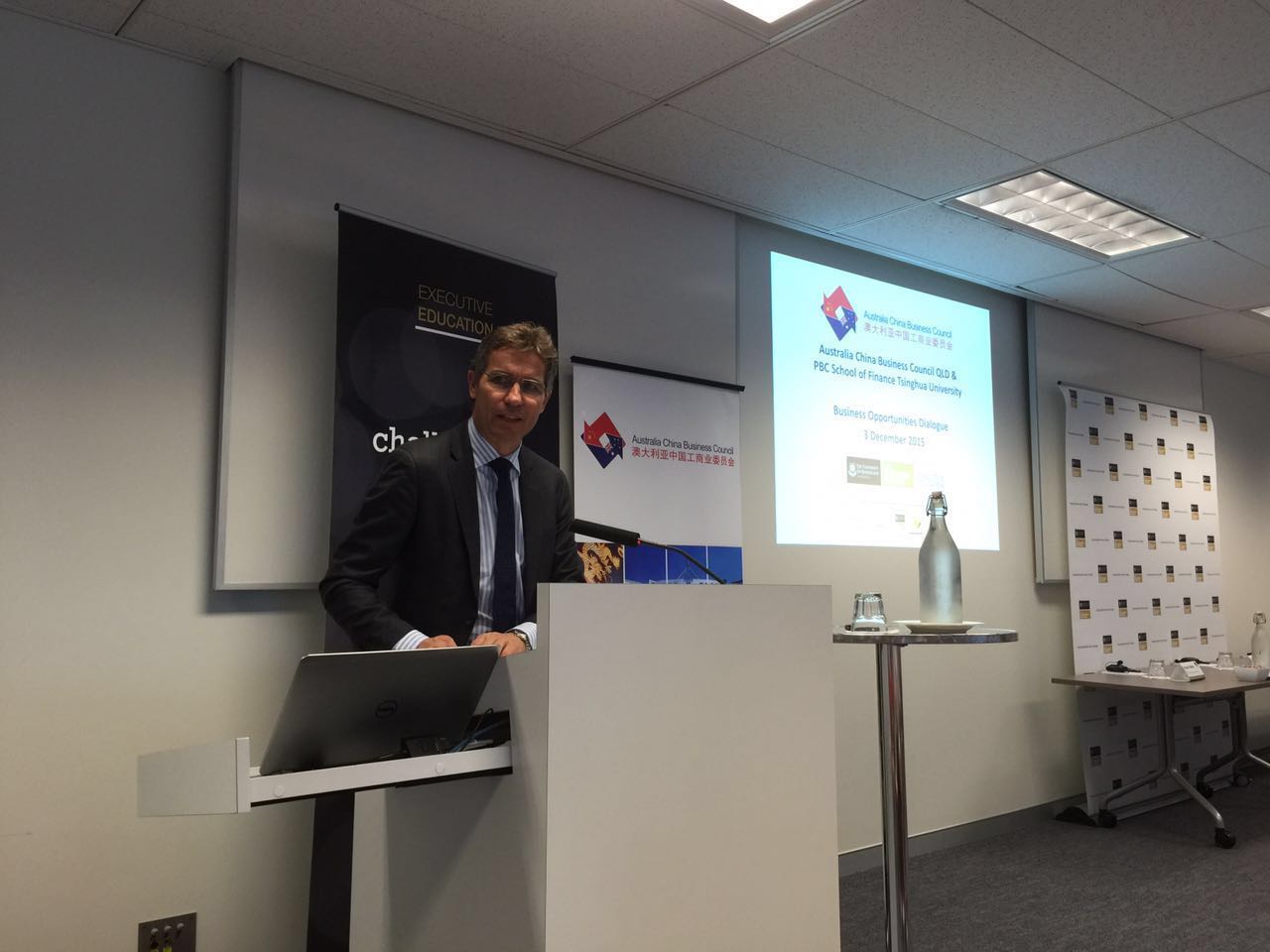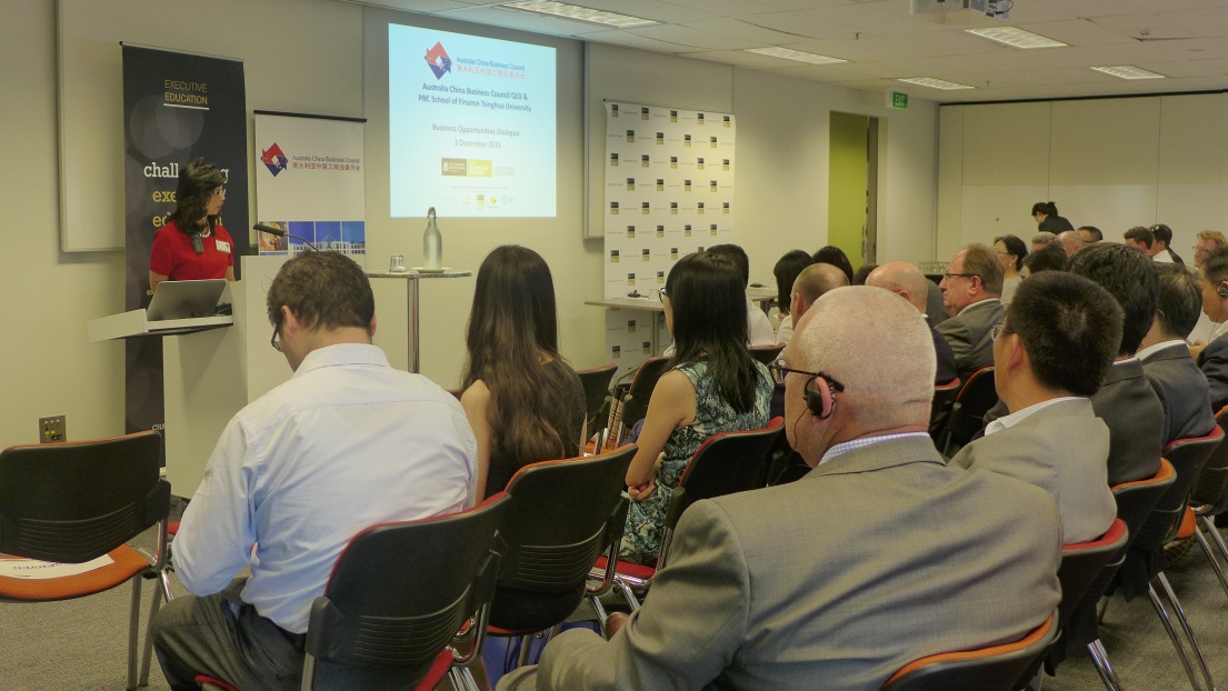 全球金融GFD首期班学生12月3日与澳大利亚中国工商业委员会( ACBC)在澳大利亚昆士兰大学商学院联合举行题为“关于中国商业机会的对话”的论坛,论坛由ACBC首席执行官Nussara