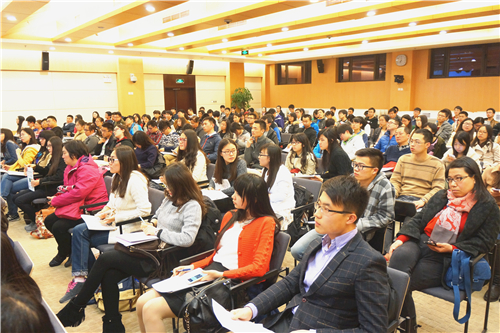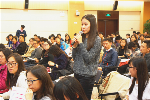 2013级博士推免生、五道口金融学院研究生会主席初众,为大家介绍了自己在五道口学习生活的亲身体验和感受。她分享了到金融学院读博士的理由,她用“长知识,开视野,交朋友,真高兴”十二个字形容了自己在五道口的收获。针对如何报考以及怎样才能被顺利录取等问题,2015级金融专业硕士推免生申子航和2015级金融学博士推免生王新程为到场考生和家长分享了自己的宝贵经验。