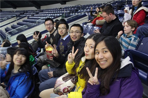 在圣母大学,同学们还有机会参加丰富多彩的校园活动。2月4日晚,在圣母主校区,同学们现场观看了圣母大学与波士顿学院(Boston College)的男篮比赛。现场热闹的气氛感染了在场的每一个同学。