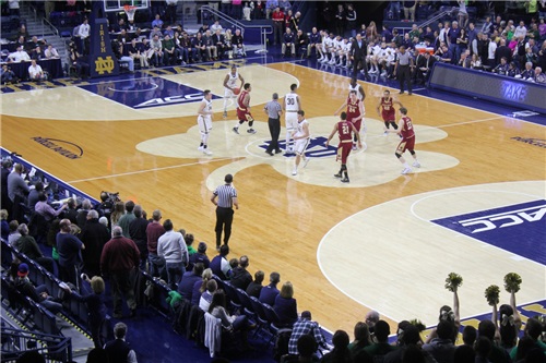 图为圣母大学对阵波士顿学院男子篮球赛现场