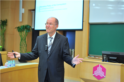 德意志联邦银行是德国的中央银行,也是欧洲中央银行系统(ESCB)的重要组成部分。费尔曼凭借其在德意志联邦银行与教学中积累的丰富经验,以欧元体系的货币政策为主题,结合欧洲一体化的经济进程,给同学们讲授了生动而深刻的一课。