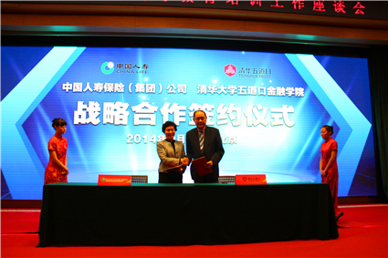 与中国人寿保险(集团)公司战略合作框架协议签字仪式在人寿广场举行。学院副院长康以同、中国人寿副总裁崔兰琴代表双方签署了协议。