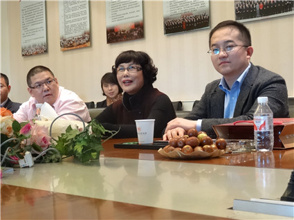 万丰奥特控股集团董事长陈爱莲(右二)与同学们交流