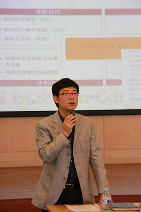 学生办刘国尧老师结合自身经验,为毕业生们详尽分析了选择第一份工作时的各种注意事项。她谈到,就业形势虽然严峻,但必须要冷静面对每一次机遇与挑战,谨慎选择人生第一份职业。而在首次择业之后,则要坚守梦想、爱岗敬业。
