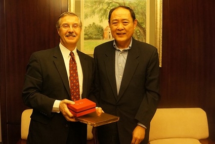 图为William Kooser(左)与康以同互换礼物