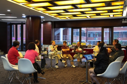 更为精彩的是,陈明哲主动邀请同学们参加“晨读会”、“圆桌晚餐”等多种形式的活动,和首期班同学就各种问题进行广泛交流,犹如一场场精彩纷呈的文化盛宴。期间,国际化转型、机制创新、秀人网、人才战略、甚至下一代教育等热点问题被接连热议,而讨论的最后一并归结到之于“人性”的思考,因为在他看来,“管理从根本上探讨的是人与人性之道”,“大道至简”令同学们受益匪浅。