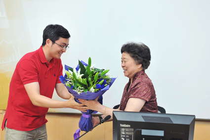 首期班同学向吴晓灵院长赠送花束