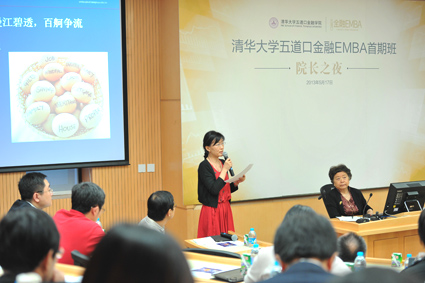 金融EMBA首期班“院长之夜”活动在五道口金融学院成功举行。吴晓灵院长与金融EMBA首期班同学就“互联网金融”和“财富管理”两大金融热点问题进行探讨与分享,并就大家所关心的课程设置、教学理念等问题进行了深入交流。 “院长之夜”是一项旨在搭建院长与学生之间沟通桥梁的活动,通过定期的面对面沟通了解同学关心的问题,进而不断提升学院的教学质量和管理水平。