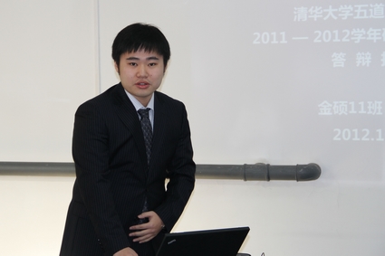 每位参与答辩的同学进行5分钟自我展示,然后用3分钟回答评委提问。答辩会从金硕10级学生刘芳蕾同学开始,至金硕11级学生陈蓉结束,历时两个半小时。