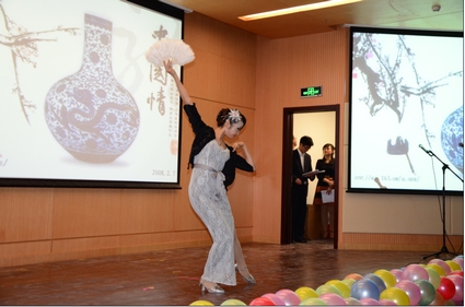 图为博士后研究员李婧表演舞蹈《青花瓷》