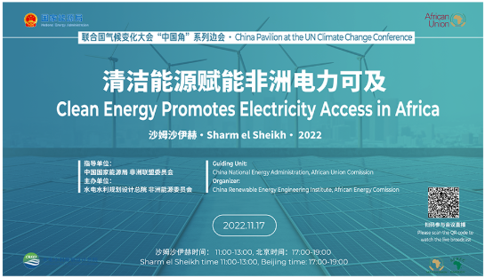 绿色金融研究中心(CGFR)副主任孙天印应邀远程出席《联合国气候变化框架公约》第二十七次缔约方大会(COP27)“清洁能源赋能非洲电力可及”中国角边会活动。