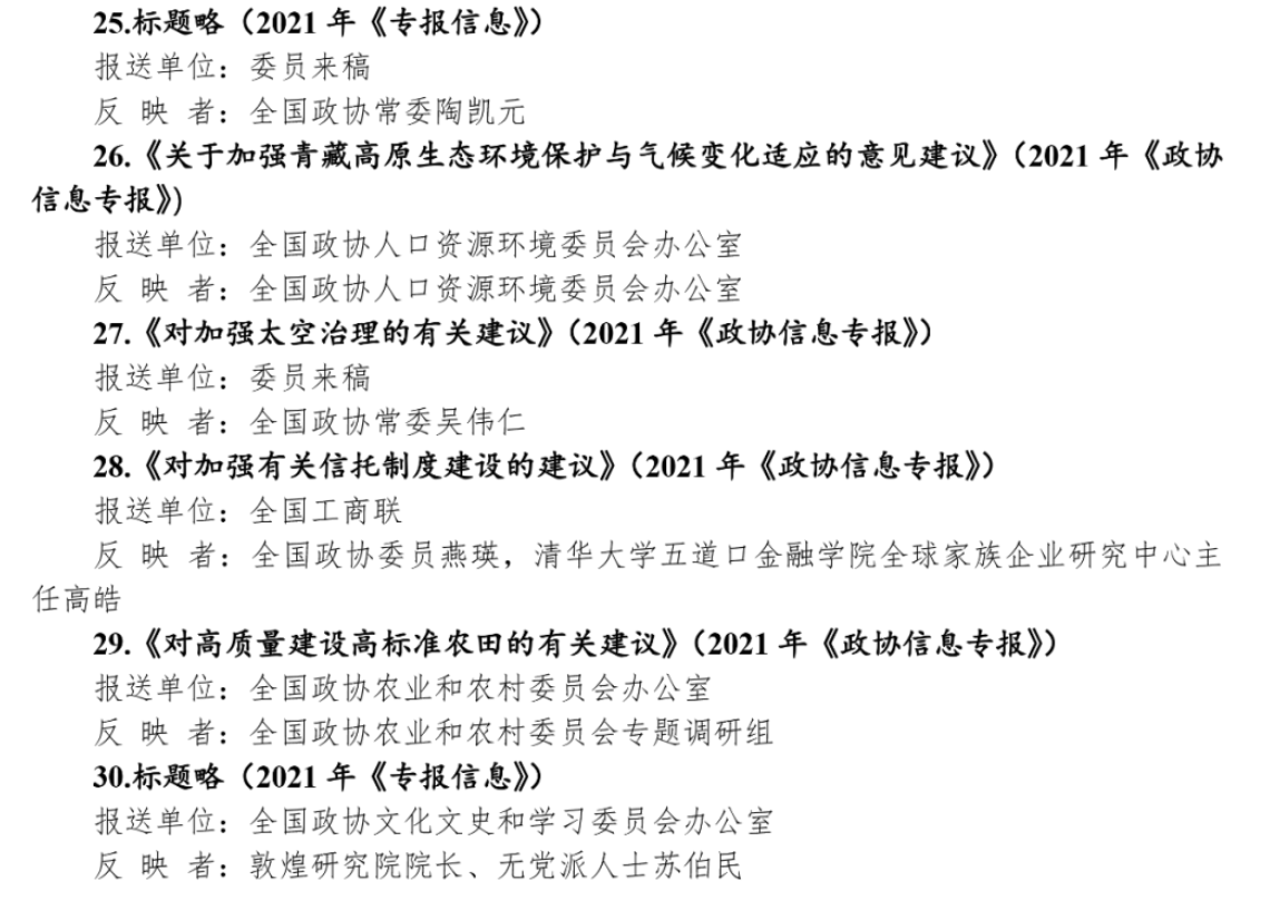 全国政协办公厅表彰名单节选(按出刊时间排序)