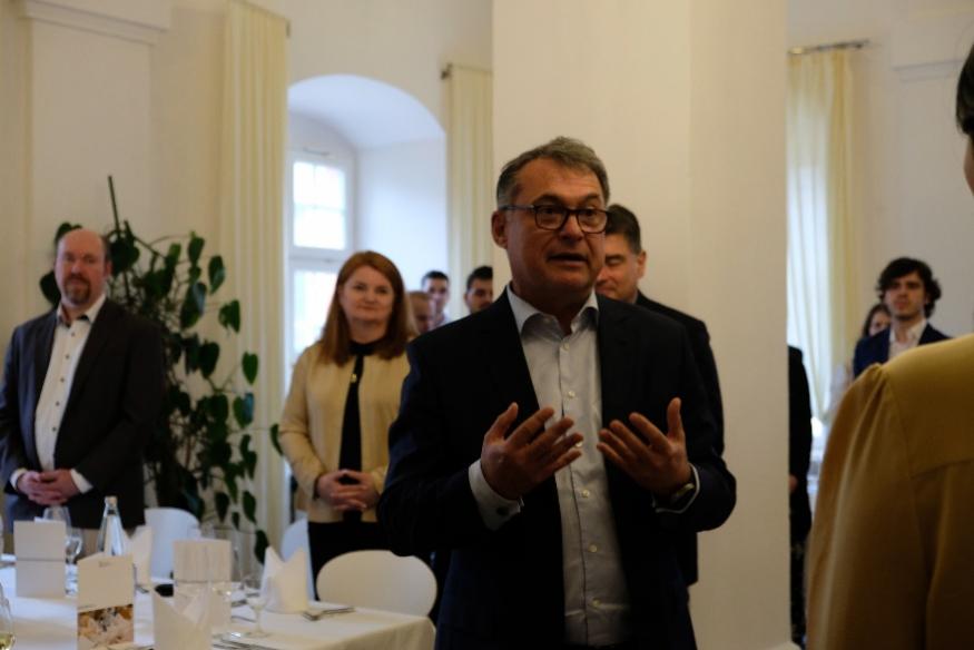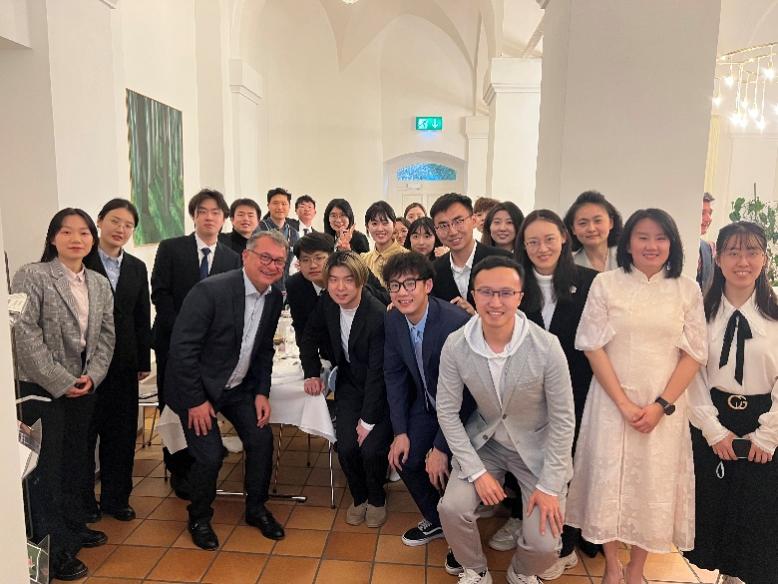 4月20日晚,欧洲中央银行管理委员会委员、德意志联邦银行行长约阿希姆·纳格尔(Joachim Nagel)与师生一同晚宴。他对参与本次交流项目同学表示热烈欢迎、赞许和期望,鼓励同学们为中央银行的国际间与区域间合作贡献力量。埃里希·科勒和德意志联邦银行行长办公室代表为学院同学们一一颁发项目证书,感谢中国师生在学术交流活动中的所提供的独特中国视角和金融深刻洞见。