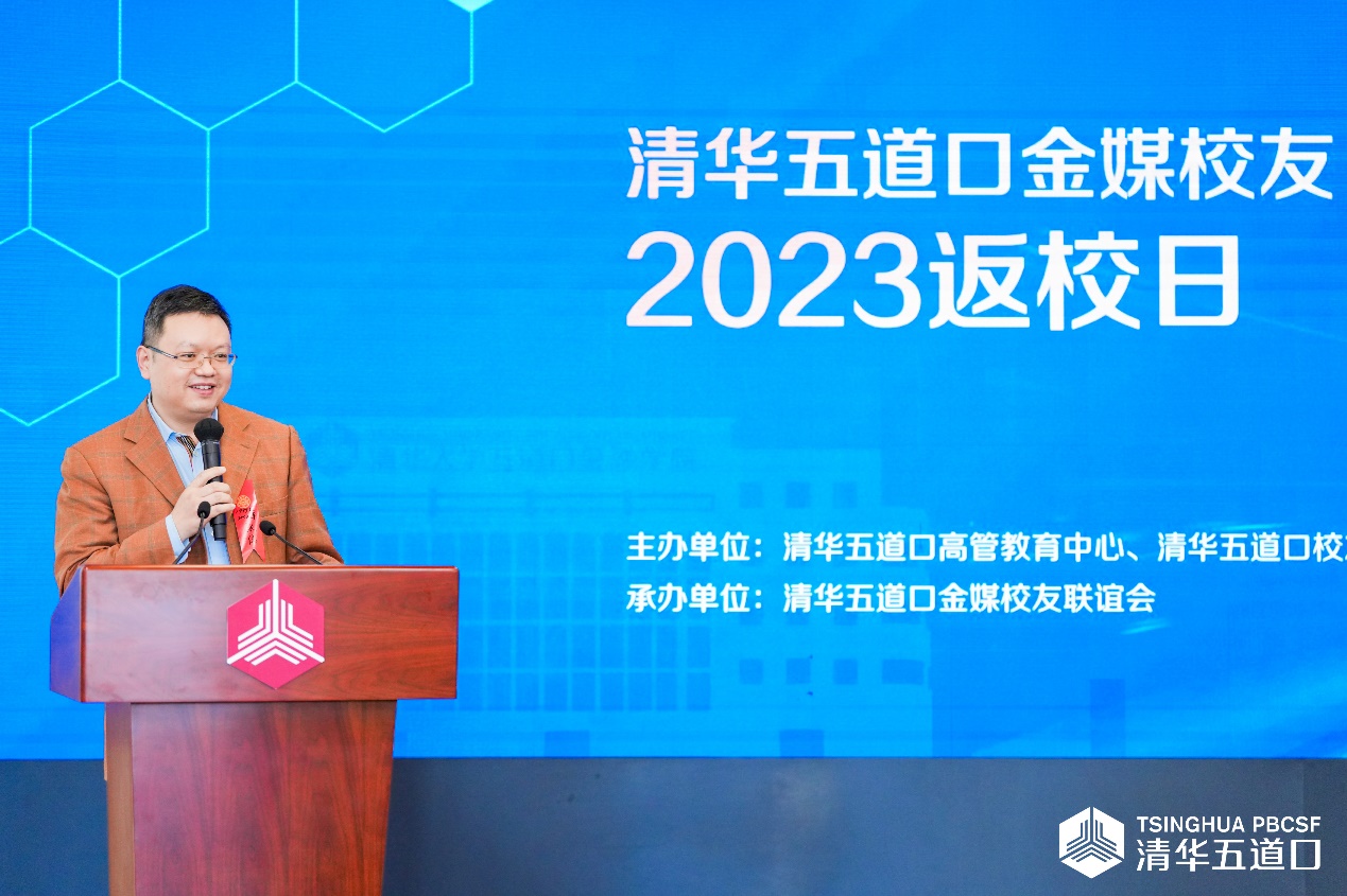 校友会秘书长张伟就学院历史、现状与文化作专题讲座。他首先对金媒校友返回母校表示热烈的欢迎。随后他重点介绍了学院的历史与文化。他指出,五道口应中国金融改革而生,随中国金融发展而发展,如今已成为中国最优秀的高等金融专业人才培养基地之一,正努力朝着世界顶尖金融学院新发展阶段迈进。他表示,校友是学院发展最坚实的支持力量,校友工作始终是学院的一项重要工作,学院校友工作始终秉持“联络校友,服务校友,促进校友和学院共同发展”的宗旨,增进校友之间、校友与学院之间的连结。他提到,金媒校友和各类校友一道以各种方式参与到学院建设当中来,集智集力促进校友与学院共同发展。他希望,广大校友始终牢记学院使命,继承“不怕苦,敢为先,讲团结,重贡献”的五道口传统,弘扬“自强不息、厚德载物”的清华精神,在推动中国金融改革的进程中贡献自己的力量。