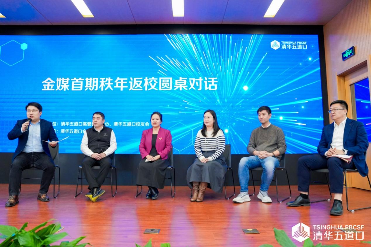 经济管理学院中国金融研究中心高级顾问许小青;2013级金媒一期班校友、投实内容科技创始人、CEO董畅岩;2017级金媒五期班校友、赵继成频道、深氢财经新媒体矩阵创始人赵继成;2023级金媒十期班同学、贵州电视台《论道》栏目总导演、蓝图公益基金会副秘书长吴迪共同参加了圆桌对话。圆桌对话由2013级金媒一期班校友、瞻胜传播创始人、CEO庞瑞主持。