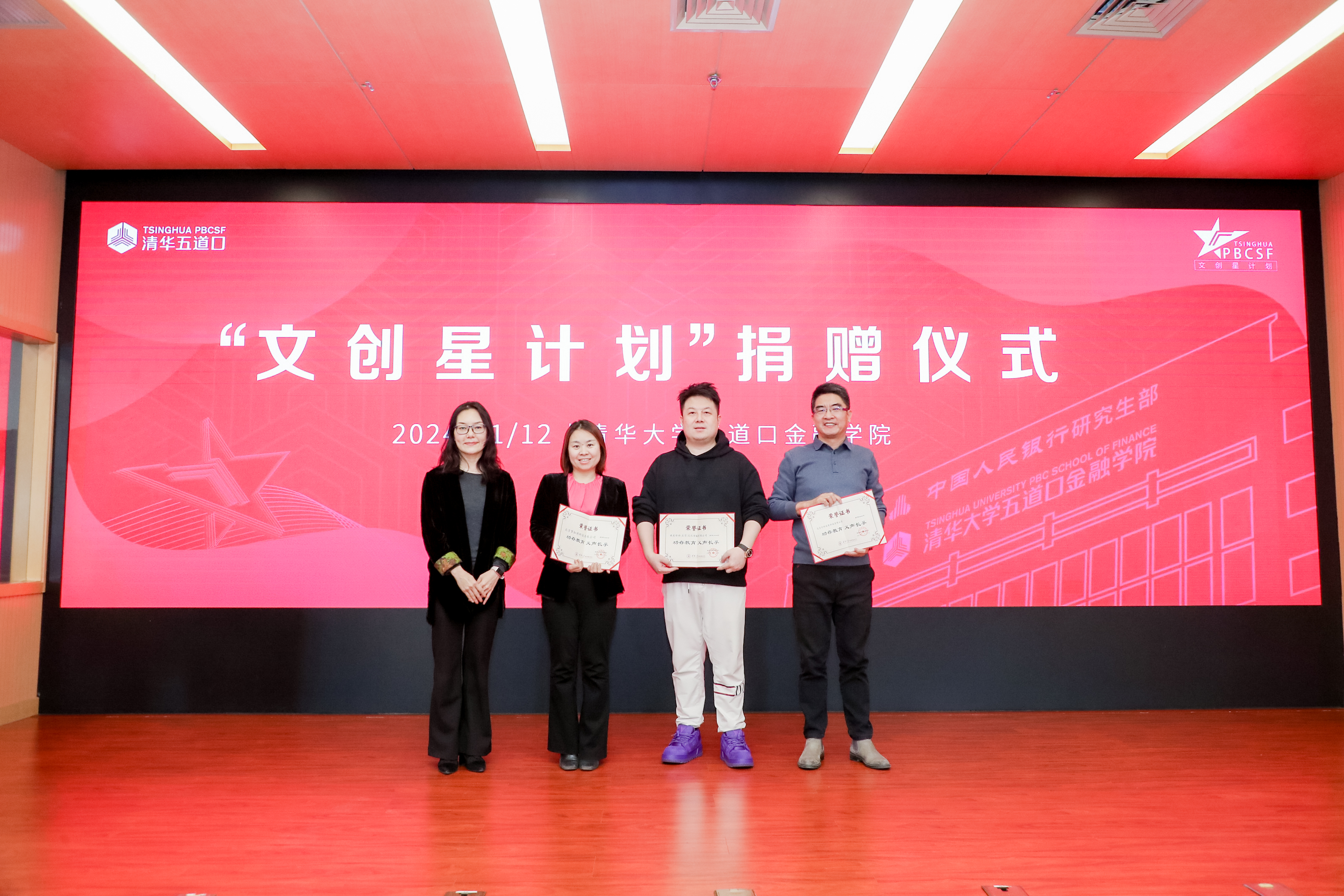 “文创星计划”项目返校日在学院举办,同学们再次回到曾经共同上课的五道口红楼小院,追忆年华、展望未来。返校日当天,学院隆重举行了“文创星计划”捐赠仪式,感谢本项目的四位同学支持“文创星成长计划”,五十四位同学支持“文创星计划四期班集体捐赠”。这笔善款将用于支持学院文创金融方向的人才培养及科研工作,对于秀人网