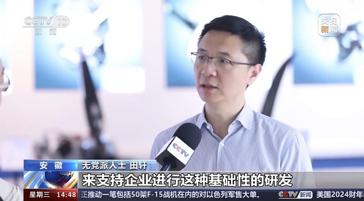 图为在安徽考察调研期间,田轩接受央视新闻采访
