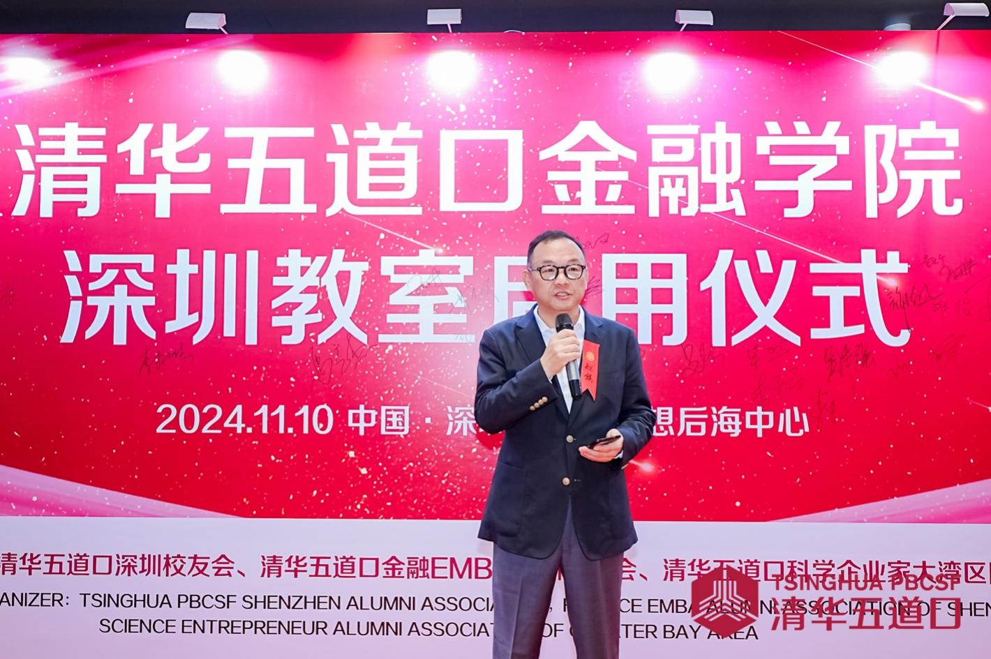 金融EMBA深圳同学会秘书长赵麒作为校友代表致辞,他首先祝愿本次活动圆满成功,作为EMBA同学会秘书长,他代表深圳同学会及理事会表达了对活动的祝贺,并期待为校友提供更好的学习交流服务。