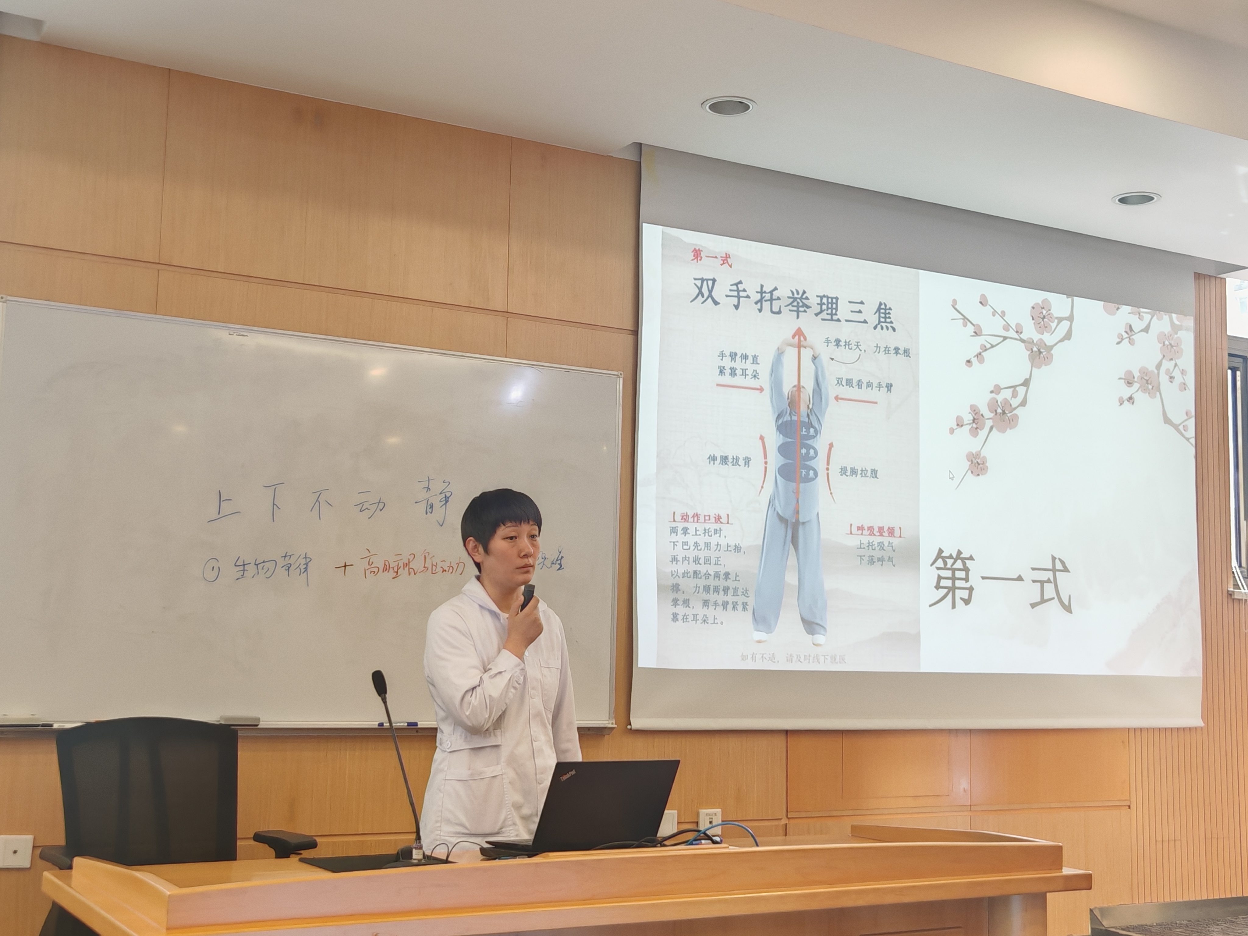 精神卫生科王瑞磊医师为大家讲解了传统养生功法八段锦的精髓,重点教授了前三式的动作要领和呼吸技巧,并带领大家进行现场练习,帮助大家调节情绪、促进身心健康。
