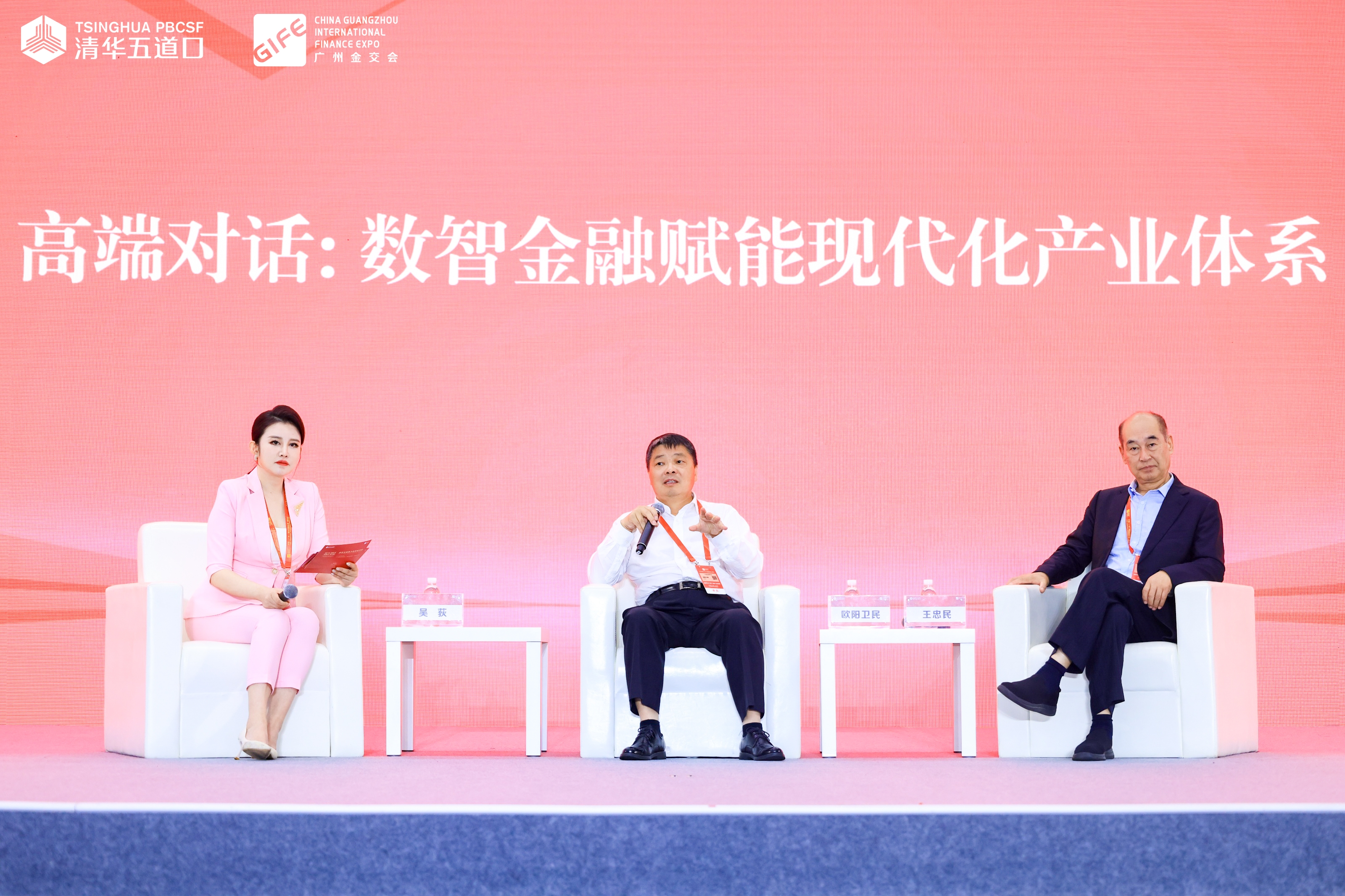 高端对话环节由广东卫视主持人吴荻主持,欧阳卫民和王忠民共同参与。