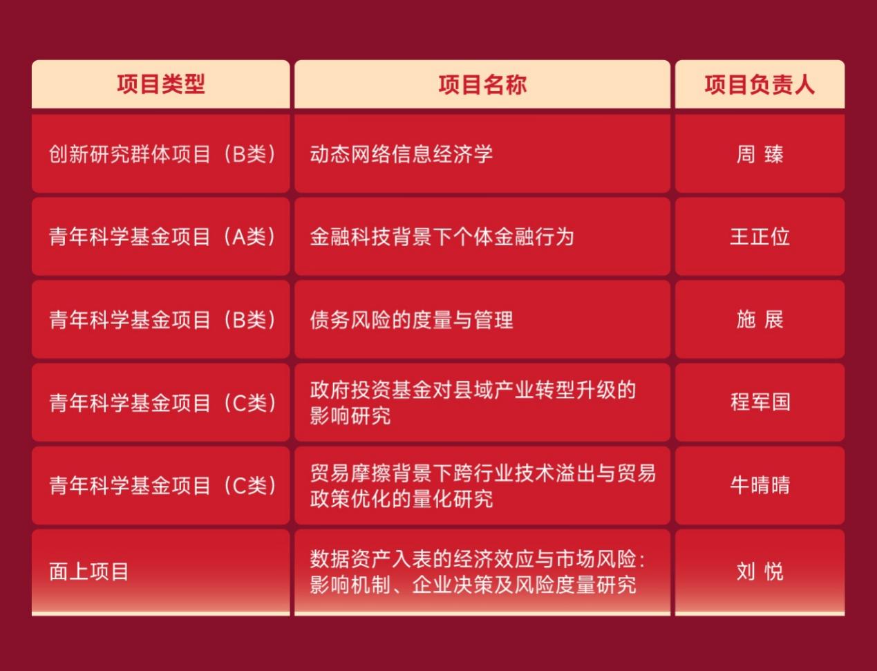 2025年,学院教师聚焦经济金融学科前沿,围绕国家经济建设与社会发展重大需求,积极申报国家自然科学基金,喜获6项国家自然科学基金项目资助。