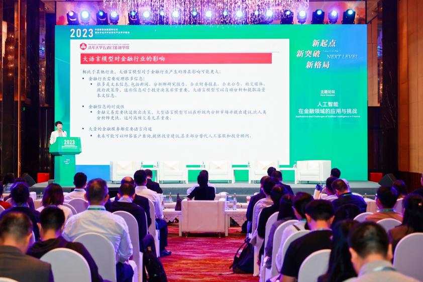 副院长、金融学讲席教授张晓燕受邀参加,并发表了“人工智能在金融领域的应用与挑战——以大语言模型为例”的主题演讲。演讲中,张晓燕认为大语言模型在自然语言处理领域已经表现出令人惊喜的技术突破,大语言模型在数据分析和决策支持等方面的出众能力将促进全球生产效率的提升。她还结合案例总结了大语言模型在金融领域的应用与挑战。