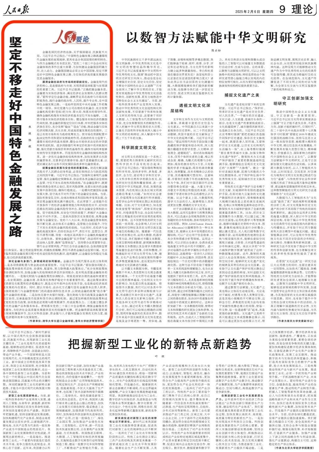 经管学院经济系系主任、教授陆毅在《人民日报》(2025年2月6日)理论版上发表人民要论署名文章,题为《坚定不移走好中国特色金融发展之路》。现将全文转载如下,以飨读者。