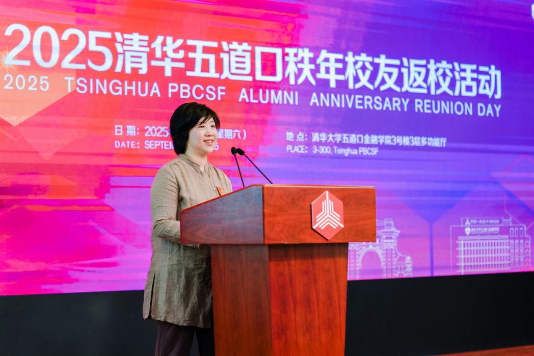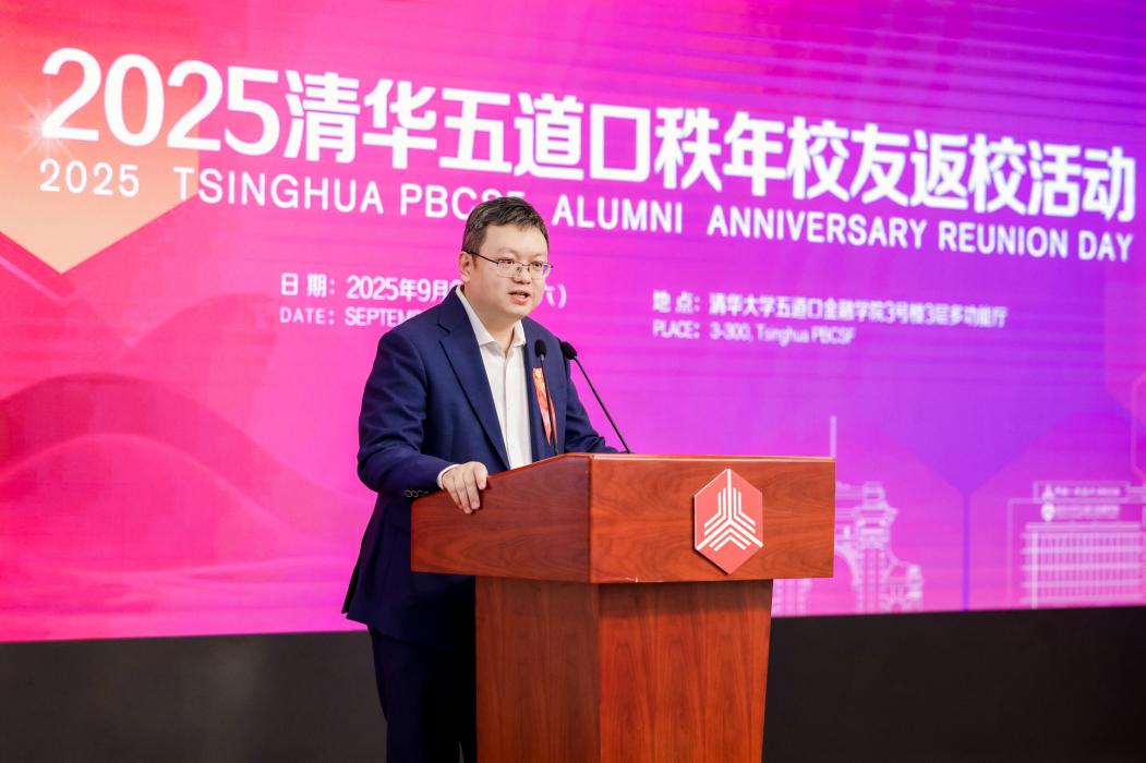 张伟代表学院向校友们的到来表示热烈欢迎和衷心感谢。他回顾了校友与道口共同成长的珍贵瞬间,并向为学院发展默默耕耘的恩师们致以崇高敬意。他指出,清华精神和道口传统已成为校友永恒的身份标识,激励着大家为中国金融改革发展贡献力量。他强调,校友是学院最坚实的支持力量,学院也将持续完善校友服务,积极推出终身学习计划和多样活动,助力校友事业发展。在院情报告环节,他围绕历史沿革、学院概况、人才培养、科研学术、国际交流合作、文化建设、校友工作、通州基地建设等方面作院情报告。展望未来,他希望广大校友秉承清华精神与道口传统,为中国金融事业的持续健康发展贡献智慧和力量。