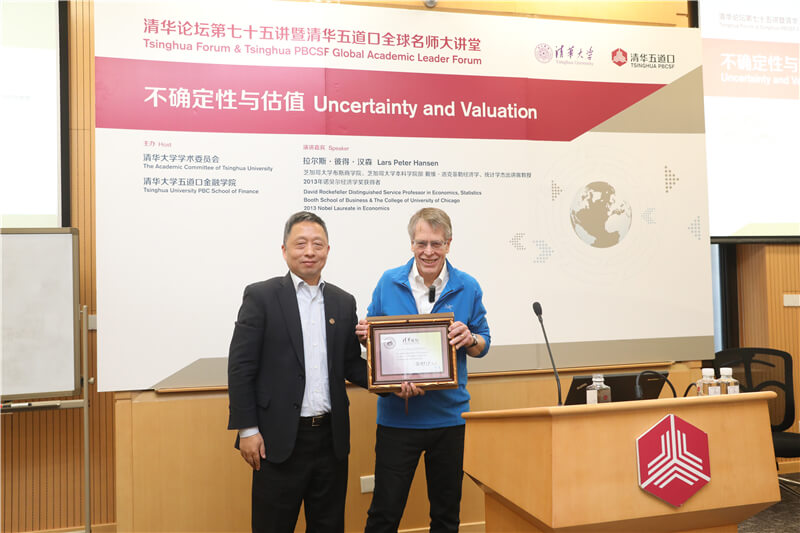报告结束后,汉森和与会嘉宾进行了热烈学术讨论,就大家关心的投资者信念扭曲的异质性分析、多因子模型研究领域的发展前景等问题做出了耐心解答。周皓向汉森颁发了“清华论坛教授演讲纪念”证书。