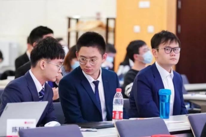 图为崔文瀚(中)在《投资银行实务》课程上讨论