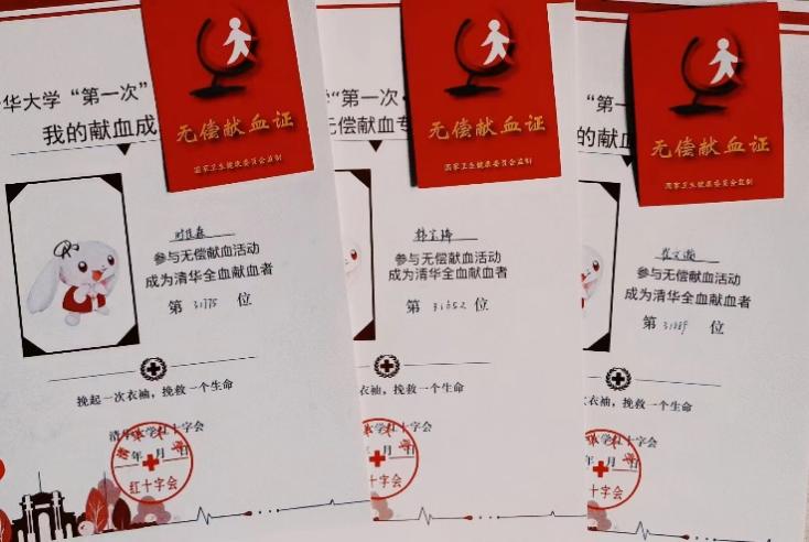 图为302宿舍参与志愿献血活动取得的献血成就卡